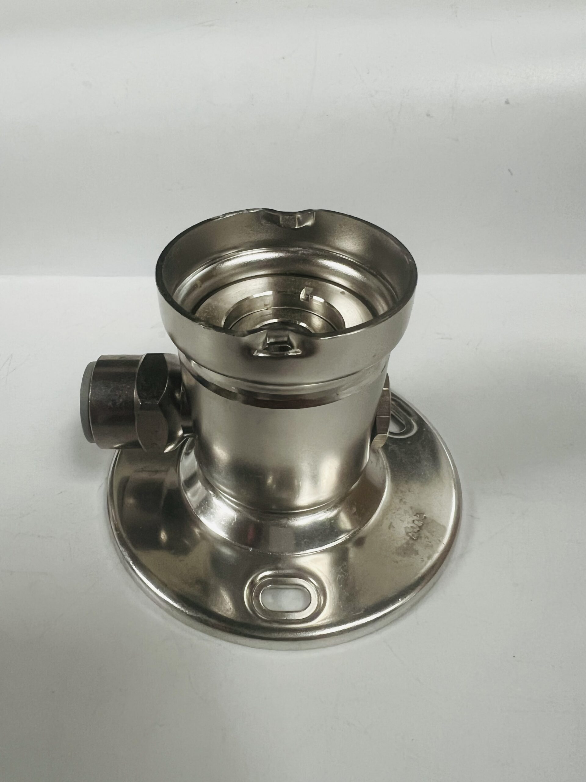 Adapter myjący wykonany ze stali nierdzewnej.