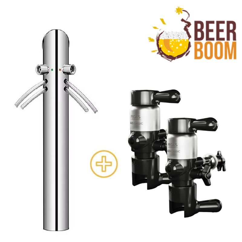 Kolumna Pegas Beer Tower w zestawie z dwoma kranami Pegas Evolution.