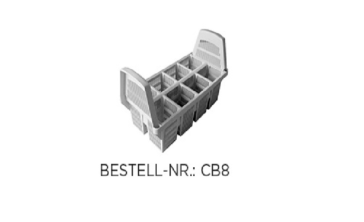 Cutlery basket 460 x 230 mm with 2 brackets and 8 large plastic boxes: For about 160 parts.