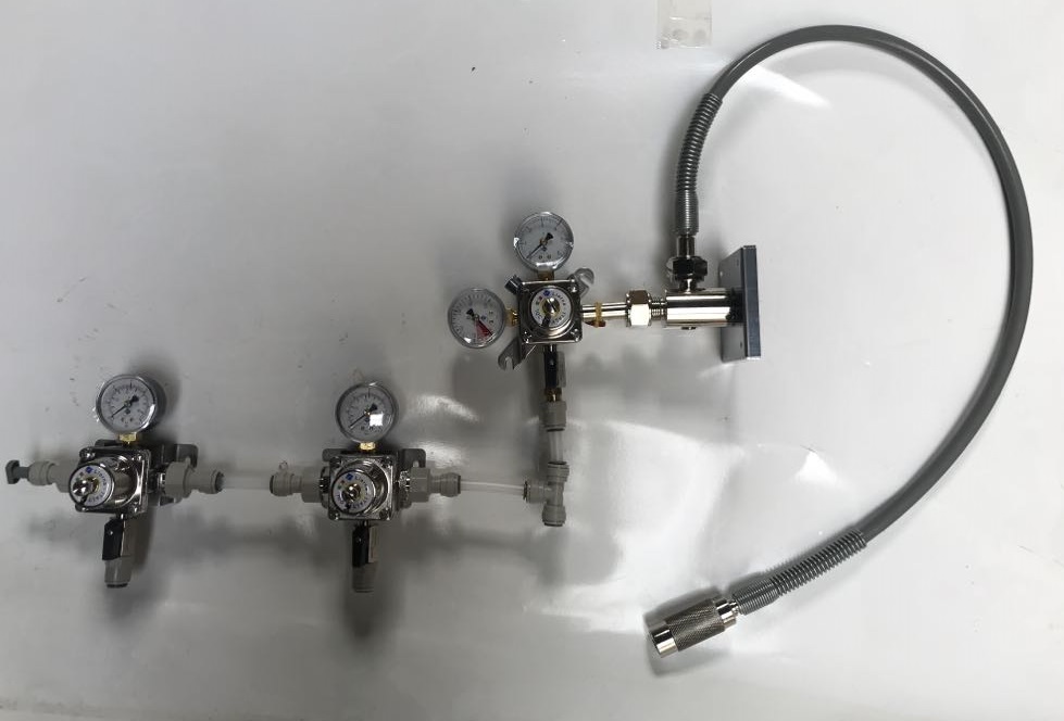 Dowolnie można przełożyć na prawą lub lewą stronę. Zestaw przeznaczony do instalacji o przeciętnym przepływie gazu (CO2, N2 lub mieszanki N2/CO2)